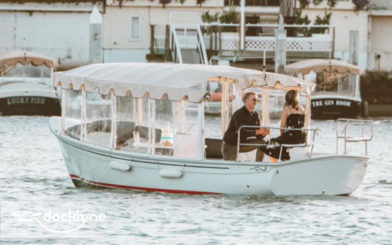 A Electric Boat rental is the perfect way to enjoy an afternoon or evening with friends and loved ones in Newport Beach. All of our Duffy Boat rentals accommodate 10 people comfortably, with a maximum of 12 people (children of all ages included). Every boat has a full, overhead canopy, all-weather operational window enclosures, and a stereo system complete with Bluetooth connectivity. Bring your favorite music and turn it up, or silently cruise the harbor while you enjoy the quiet that only an Electric Duffy Boat can offer.
