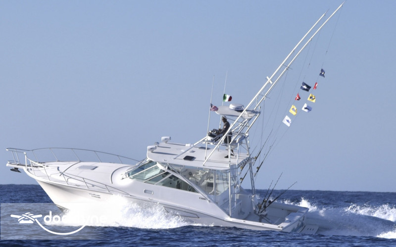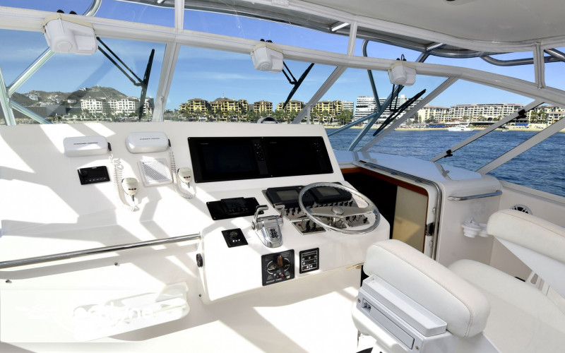 This 40' Cabo Express is a true fishing machine. Kept impeccably, and with specially added Ram Trim Tabs, it runs extra smoothly and reaches a top speed of 35 knots. It is powered by 700 HP Turbo Charged Twin Caterpillar Engines.