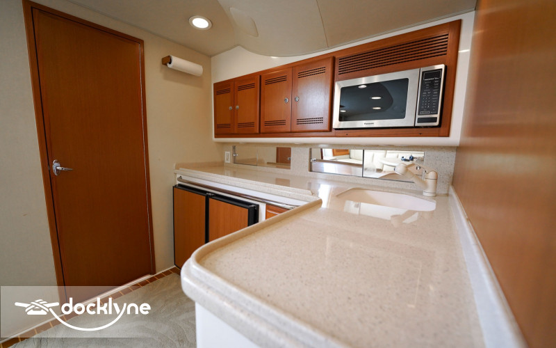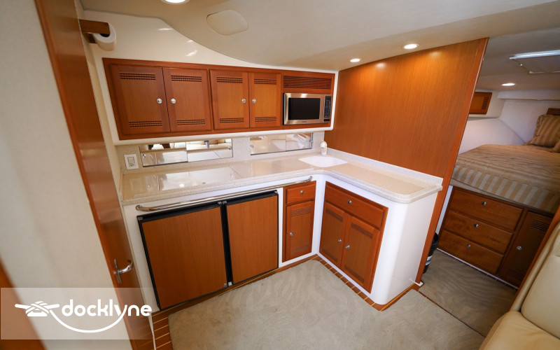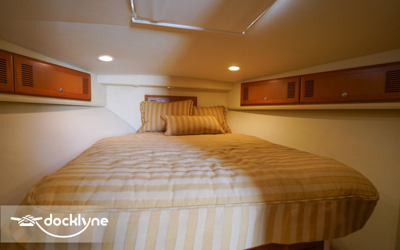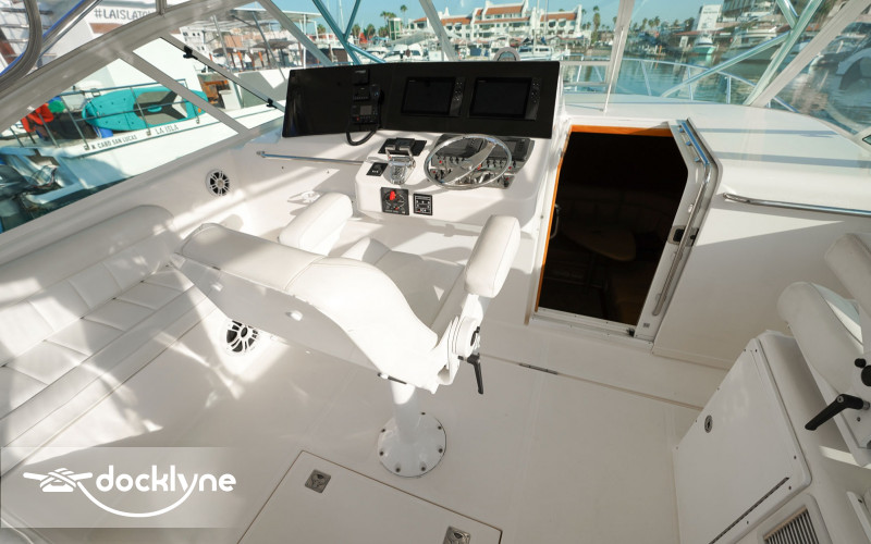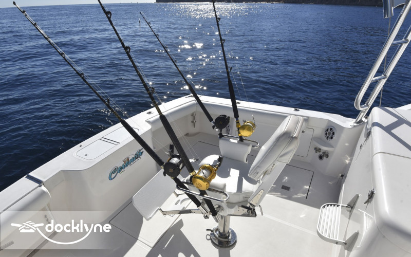 This vessel is expertly designed, allowing the deck space to be taken full advantage of. Als, it includes a chilled fish box to make sure your catch is kept fresh. A tuna tower allows the Captain an unbeatable vantage point for more chances at spotting fish or schools with his Gyro Stabilized Binoculars. Forward of the cockpit and a step up is the command deck, which has a full Eisenglass enclosure that is air-conditioned with L-Shaped seating and co-captain chair. The whole group can be part of the action while staying fresh.
