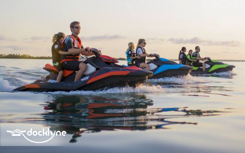 Yamaha VX 110 Waverunners that hold two passengers and the total weight limit is 400 pds. All drivers must watch this 14 min. safety video and pass a written test.